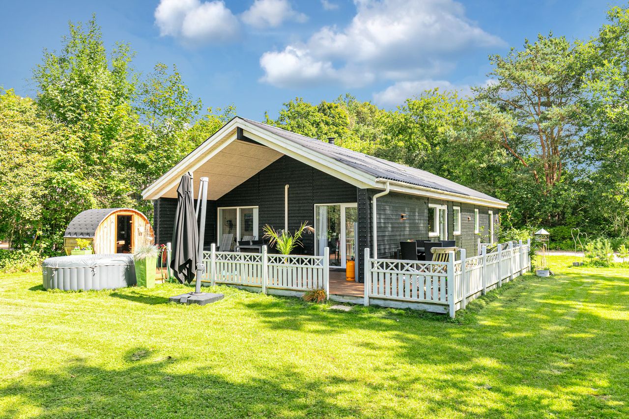 Særdeles flot charmerende Fritidshus på 91 m2, opført i 2022, med udendørs spabad samt udendørs sauna.