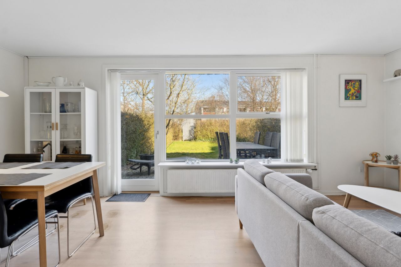 Andelsboligen er opført i mursten med built-up tag pålagt og med træ/alu vinduer, og beliggende op imod grønne områder.