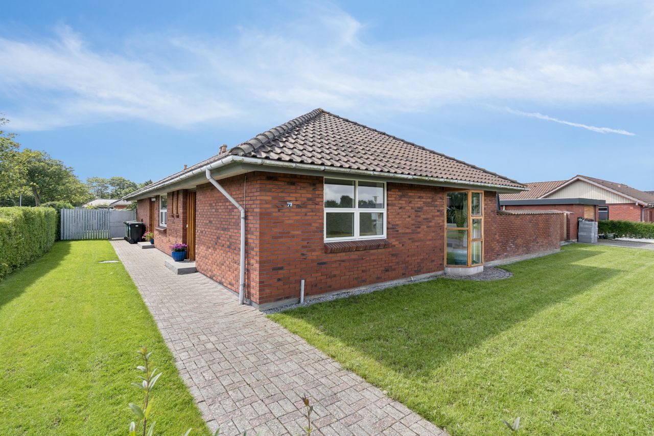 Villaen er opført i en rødbrændt sten med tegltag pålagt.
