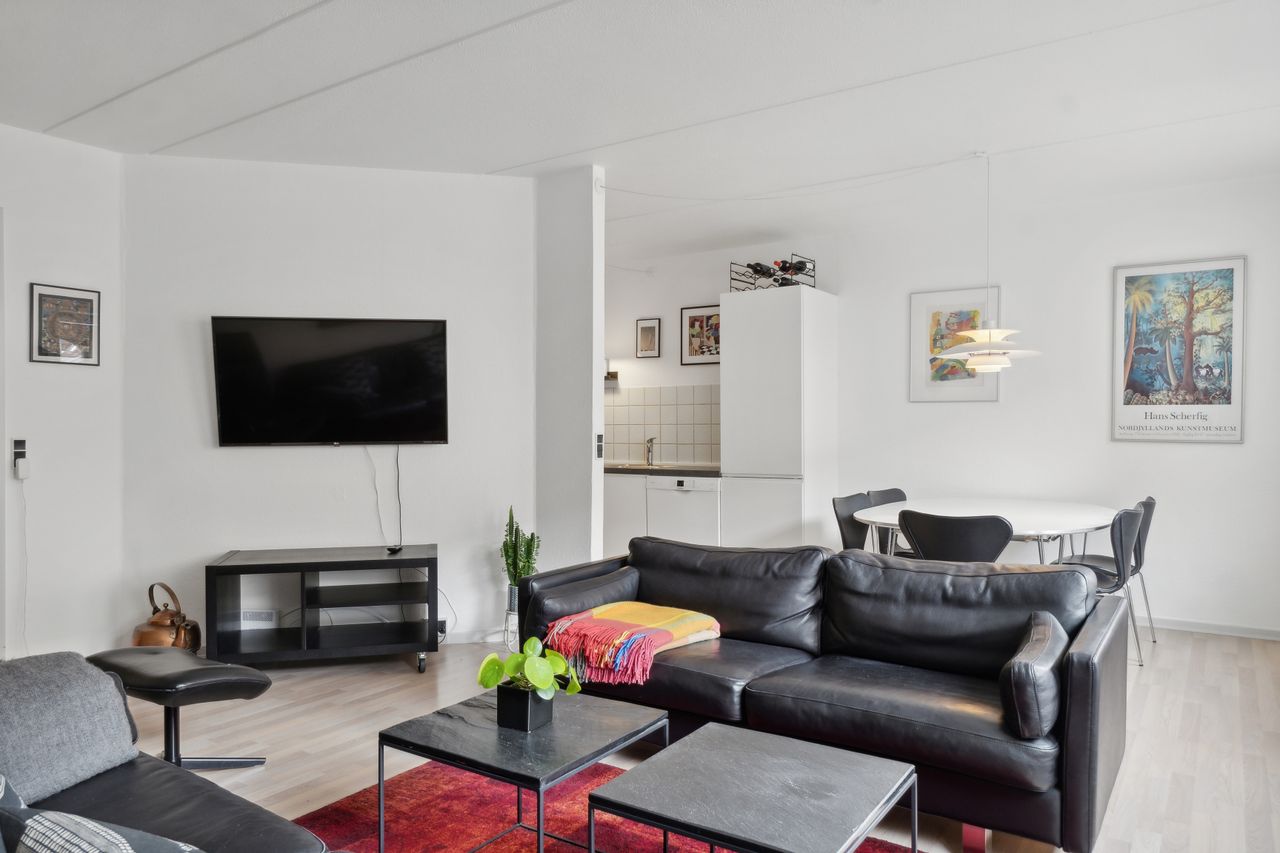 Andelsbolig på 93 m2 i Indre by, i stueetagen, med tilhørende mindre flisebelagt atrium gårdhave