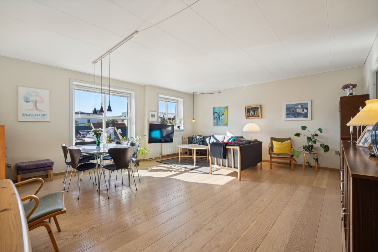Sjældent udbudt Andelsbolig på 91 m2 med solrig altan i den indre by, med egen parkering.