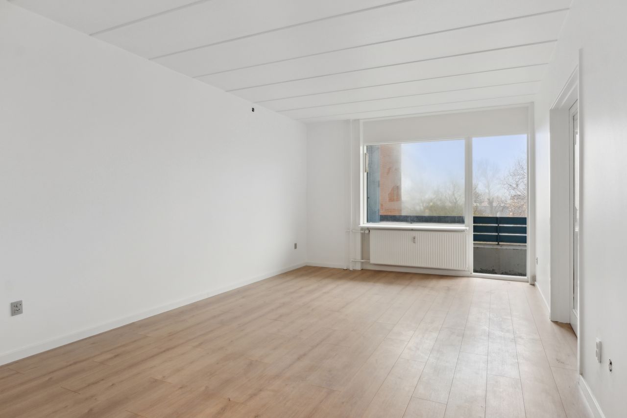 Køkkenet er gjort klar til montering/opsætning af nyt køkken og der medfølger nyt laminatgulv.