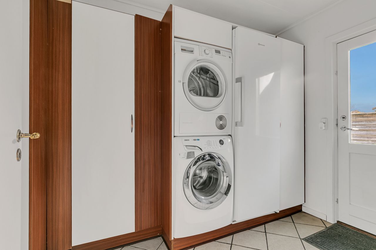 Dejligt bryggers, med diagonalt liggende klinkegulv, god skabsplads samt spots i loftet.