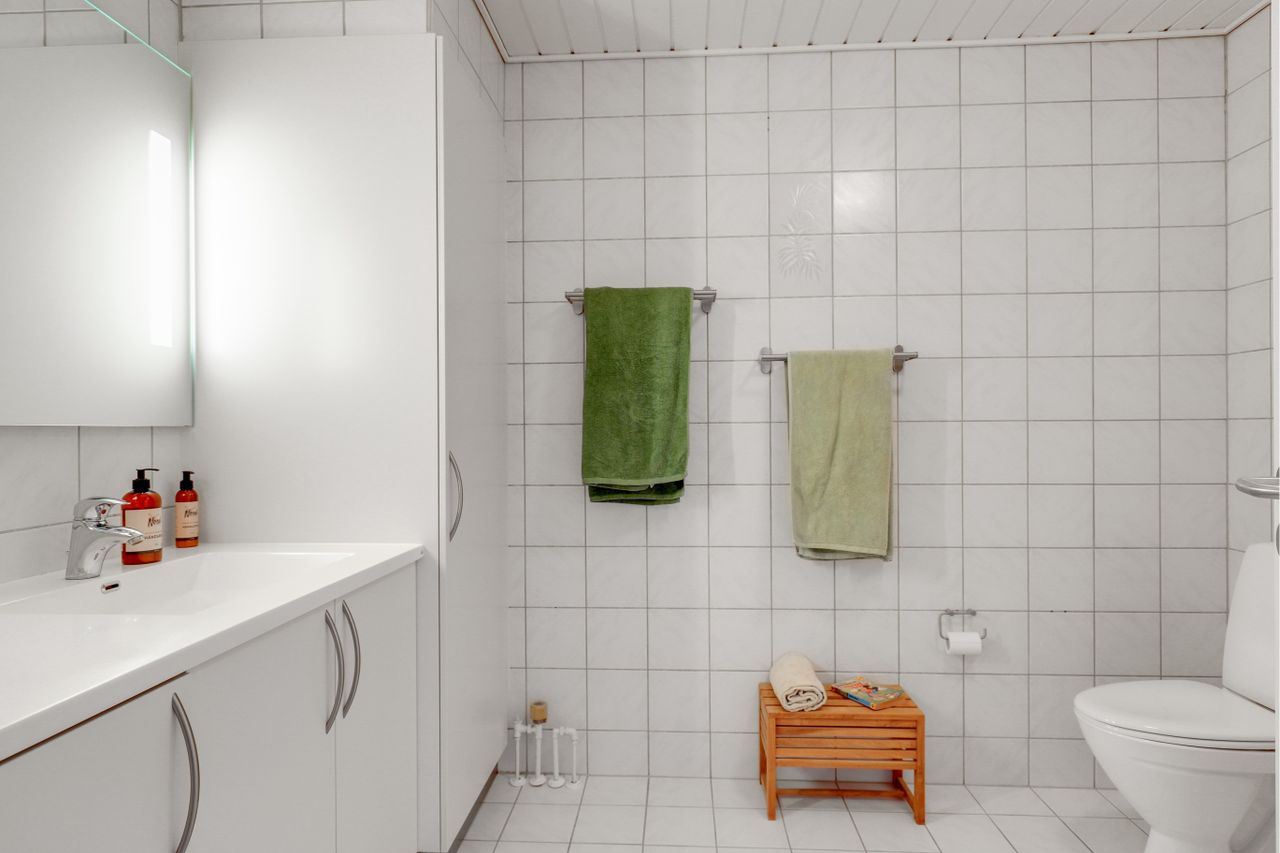 nedfældet håndvask, vaskemaskine, gemt i skabet, sep. bruseniche, gulvvarme mv.