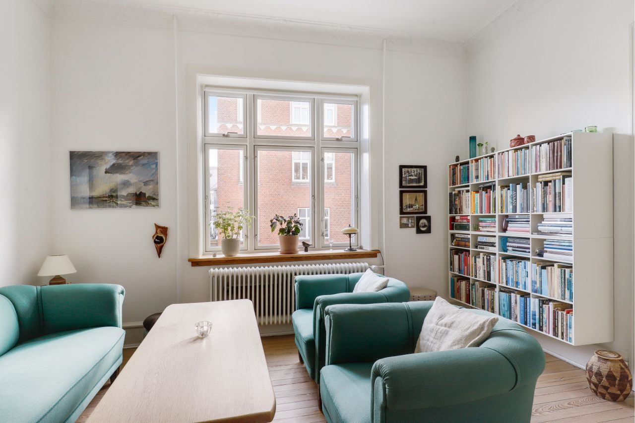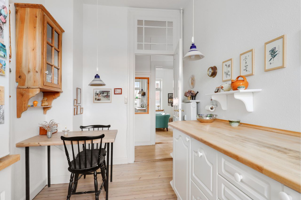 Hele lejligheden "oser" af atmosfærer, som man kun finder i ældre lejligheder og der er højt til loftet i hele