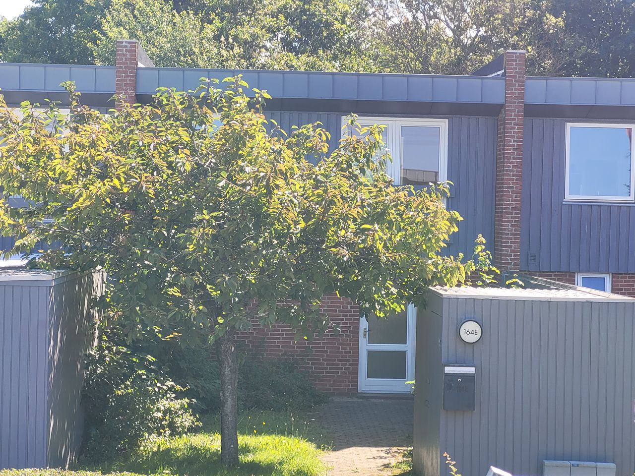 Andelsboligen er opført i mursten med built-up tag pålagt og med træ/alu vinduer, og beliggende op imod grønne områder, for enden af rækken af andelsboliger, med kun en nabo, der er direkte udgang til de grønne områder.