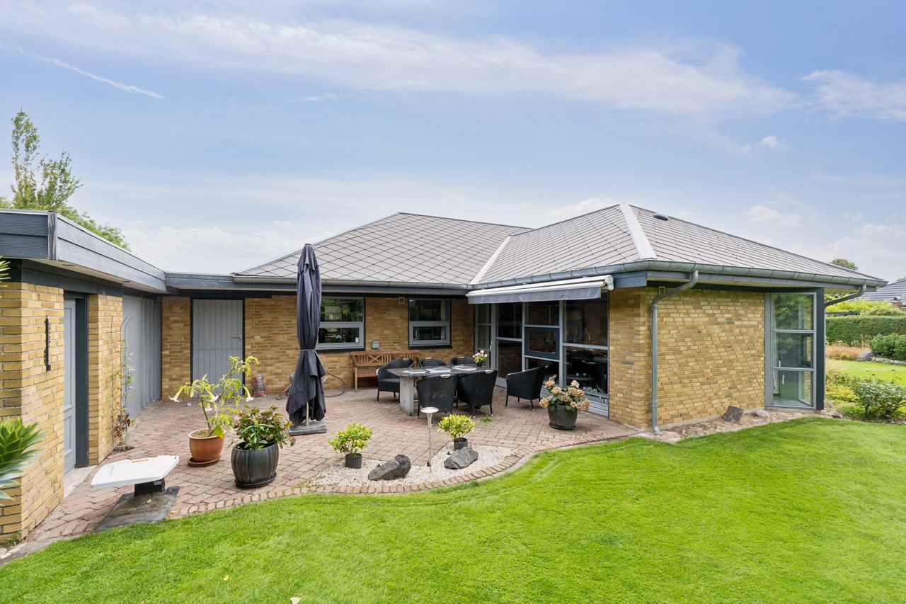 Villaen er opført i flot gulbrændt mursten med et smukt diagonalt liggende asbest frit skiffertag som er blevet pålagt i 2008 og beliggende på skøn ugenert grund på ca. 858 m2., med en skøn stor solrig fliseterrasse.