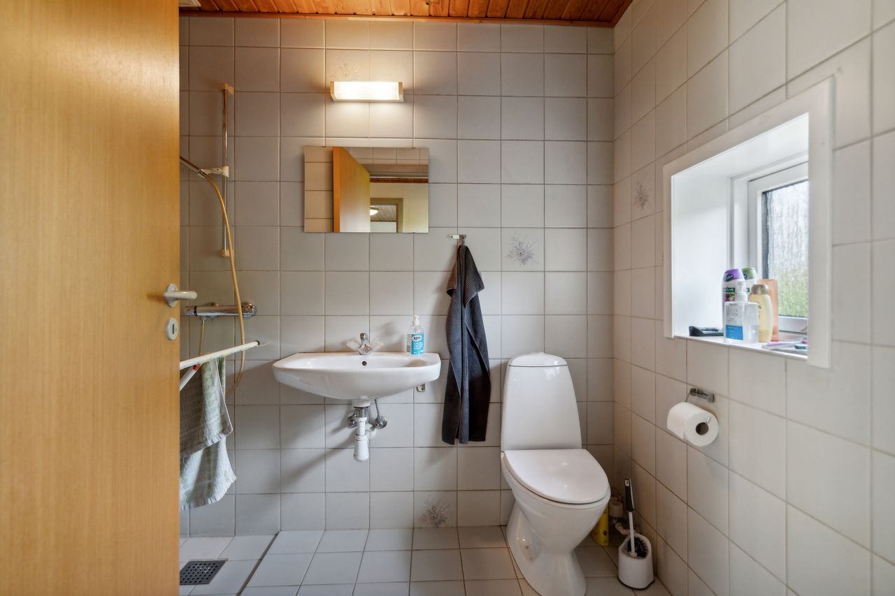 Badeværelse, med klinker på gulv samt vægge, stor sep. bruseniche, gulvvarme mv.